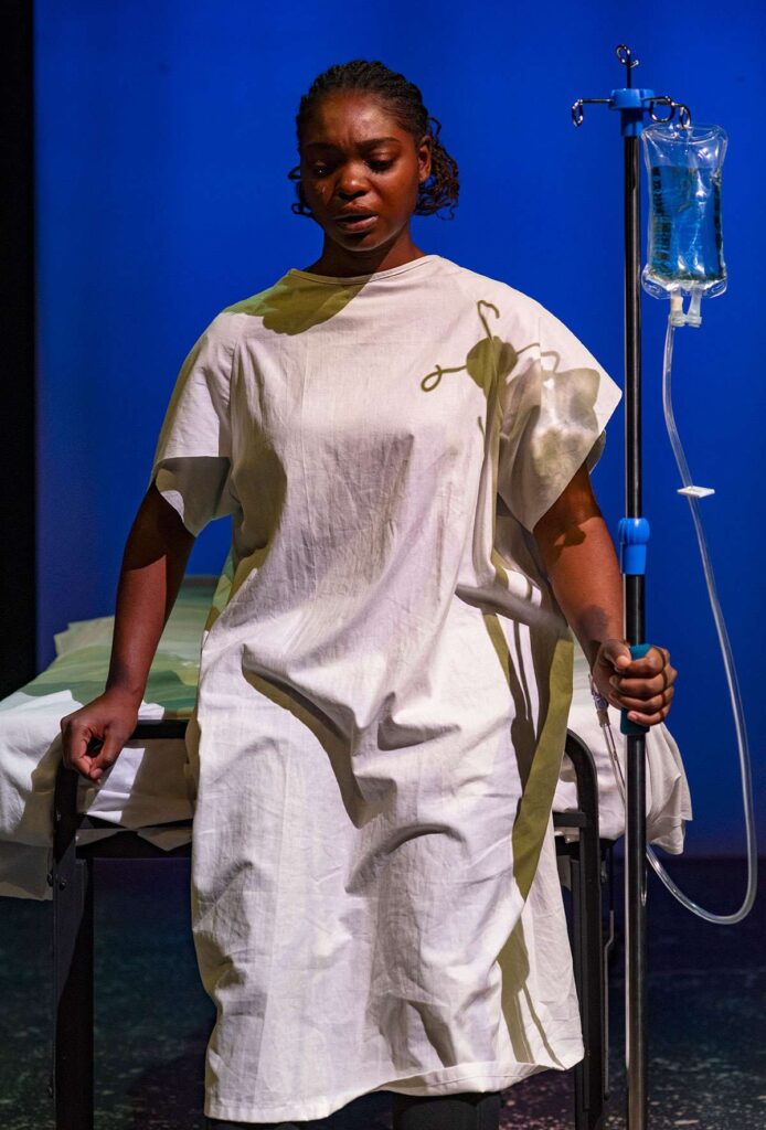 Changing Rays, written by Mauricia Lewis is a disturbing look at an imagined future for the beauty industry. It’s a dystopian tale in which customers are given the opportunity to have their ethnicity erased by a cosmetic procedure, one which will leave participants white and no longer the target of unwanted racist comments. The hapless student Ngozi, played winningly by Anoä-Kanelle Calpas, lists all the reasons why she wants the procedure before ultimately making her final decision. Although the piece is a comic satire, it offers a very singular—and thoughtful–view of what it means to be beautiful.