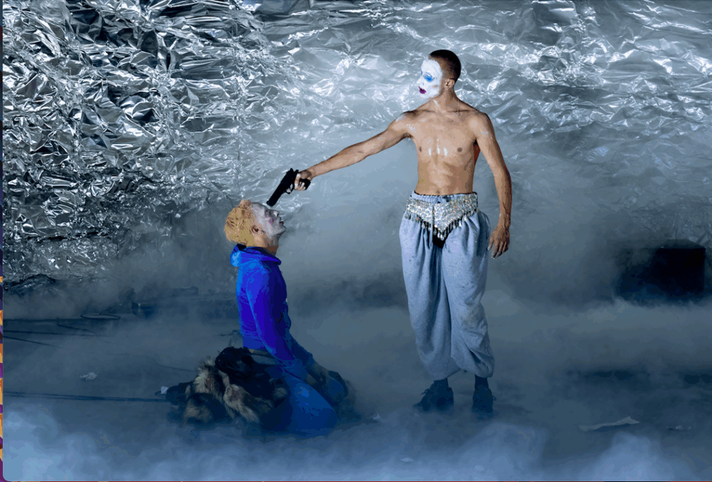 Music/dance company Bullyache (the duo Jacob Samuel and Courtney Deyn) opened the Queen Elizabeth Hall’s season of work that is both queer and uncategorisable. Bullyache is an apt choice to launch this season since their work indeed defies category yet remains, as always, ultimately exhilarating.