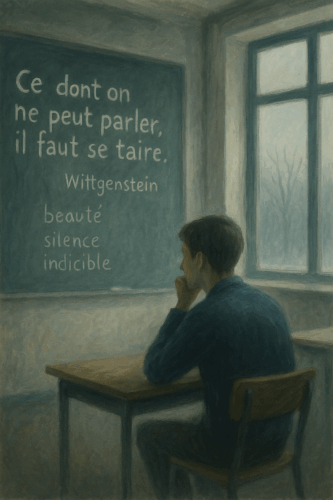 Je cherchais un moyen de capter leur attention quand je me rappelai une phrase de Wittgenstein qui avait le don, malgré son évidence, d’intriguer les élèves. Plusieurs têtes se retournèrent en effet vers le tableau après que j’y eus inscrit la conclusion du Tractacus logico-philosophicus : « Ce dont on ne peut parler, il faut le taire. » C’est François, un élève d’habitude réservé, qui prit le premier la parole :