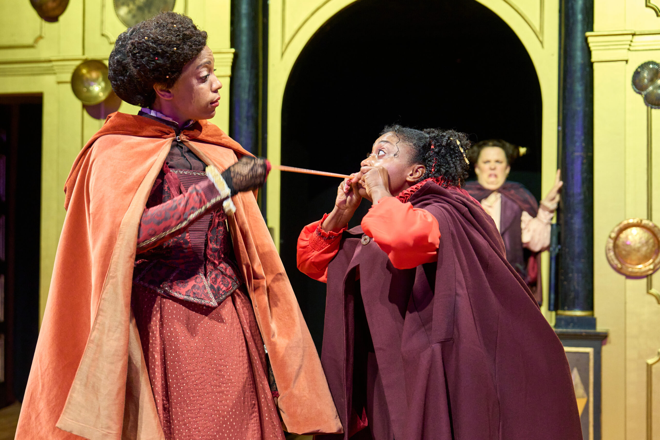 Janet Etuk & Rosemarie Akwafo in Rough Magic at Shakespeares Globe | c. Manuel Harlan