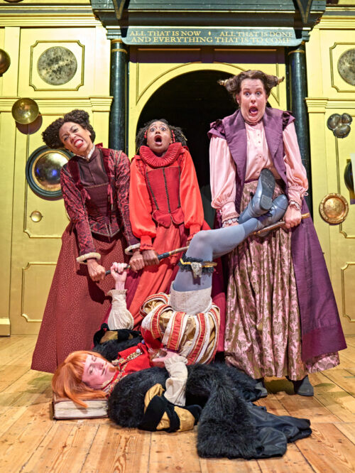 Rough Magic opens with the three witches still reeling from the chaos caused by their prophecy to Macbeth—particularly the youngest witch, who is bemusedly scolded by the others for predicting he would one day become king. Defending herself, she protests, “I only said what I saw!” only to be reminded that, sometimes, silence is golden. Now, however, the witches face an even bigger problem: a man desperate to become Henry IX, despite the small historical detail that such a monarch never existed. Determined to rewrite history, this would-be king—played with infectious hilarity by Kerry Frampton—will stop at nothing to achieve his goal. Will the witches be able to prevent history from being rewritten and avoid a repeat of the Macbeth debacle? That’s the question the play poses.